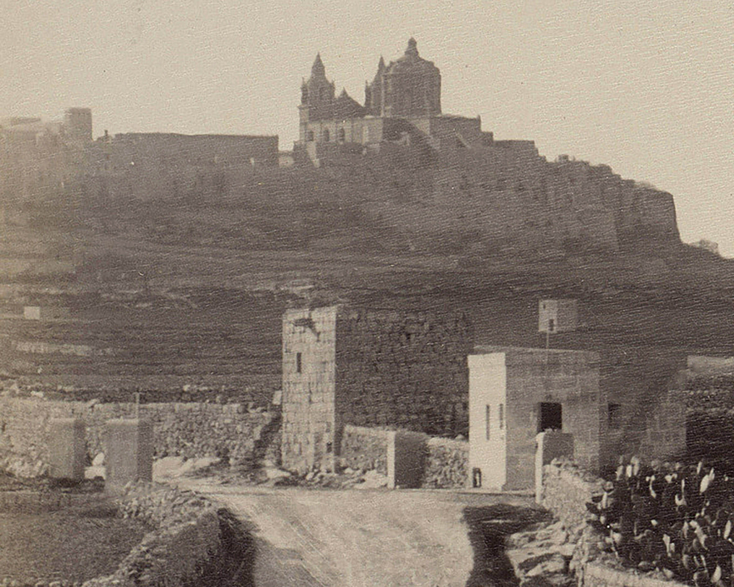 The little bridge over Wied ta San Martin, at the edge of the hamlet of Ta’ San Gakbu, was a picturesque rural spot that caught the attention of a Victorian photographer. In capturing the scene he also recorded a unique view of the Malta Railway crossing at Guard Hut No.14. With the familiar silhouette of Mdina on the horizon, it’s a shame that no one took the opportunity to capture a train passing through the scene; it could perhaps have become one of the most evocative images of the railway.