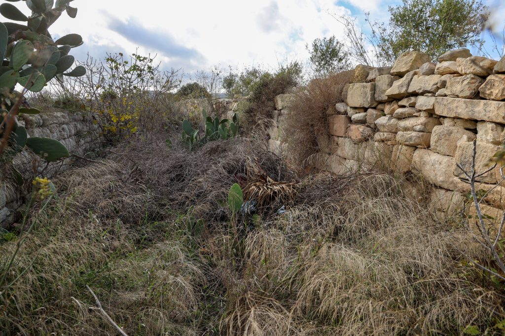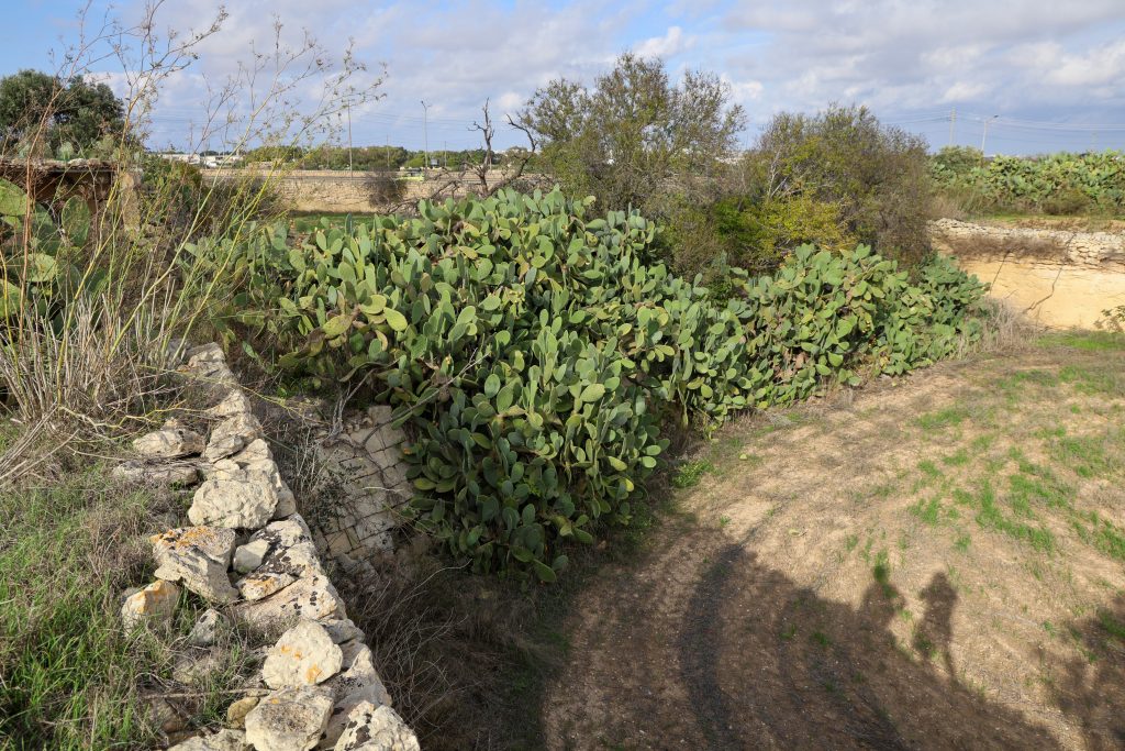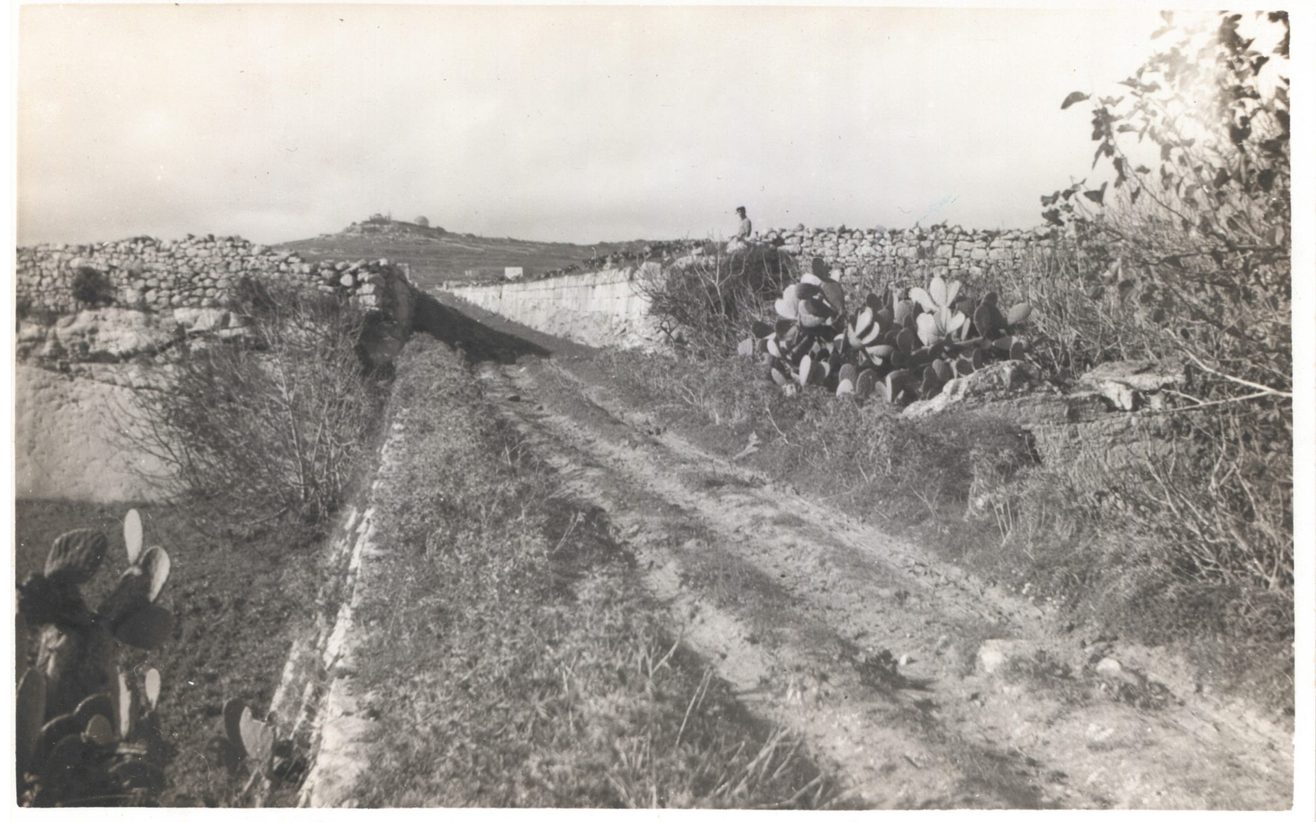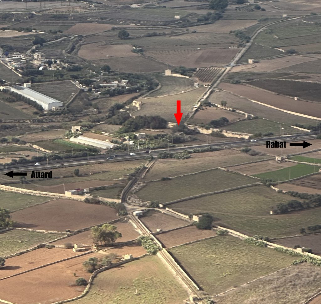 The route had to negotiate other physical challenges like this sudden deep gully, just beyond the Mdina Road and 5.5 miles out from Valletta. Although hidden today by vegetation, the tall stone-built embankment approached on either side by sheer cuttings can still be made out.