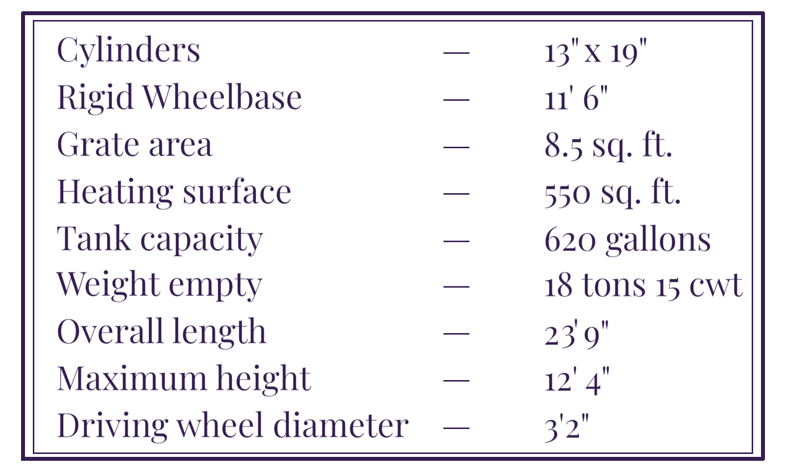 These engines arrived with decorative lining applied to their tanks and bunker, but this was lost as engines were overhauled and the livery simplified. There is some debate over whether the tall steam domes were polished brass or painted the same green as the standard engine livery. Because of the matching appearance in most photos, the latter is probable.
