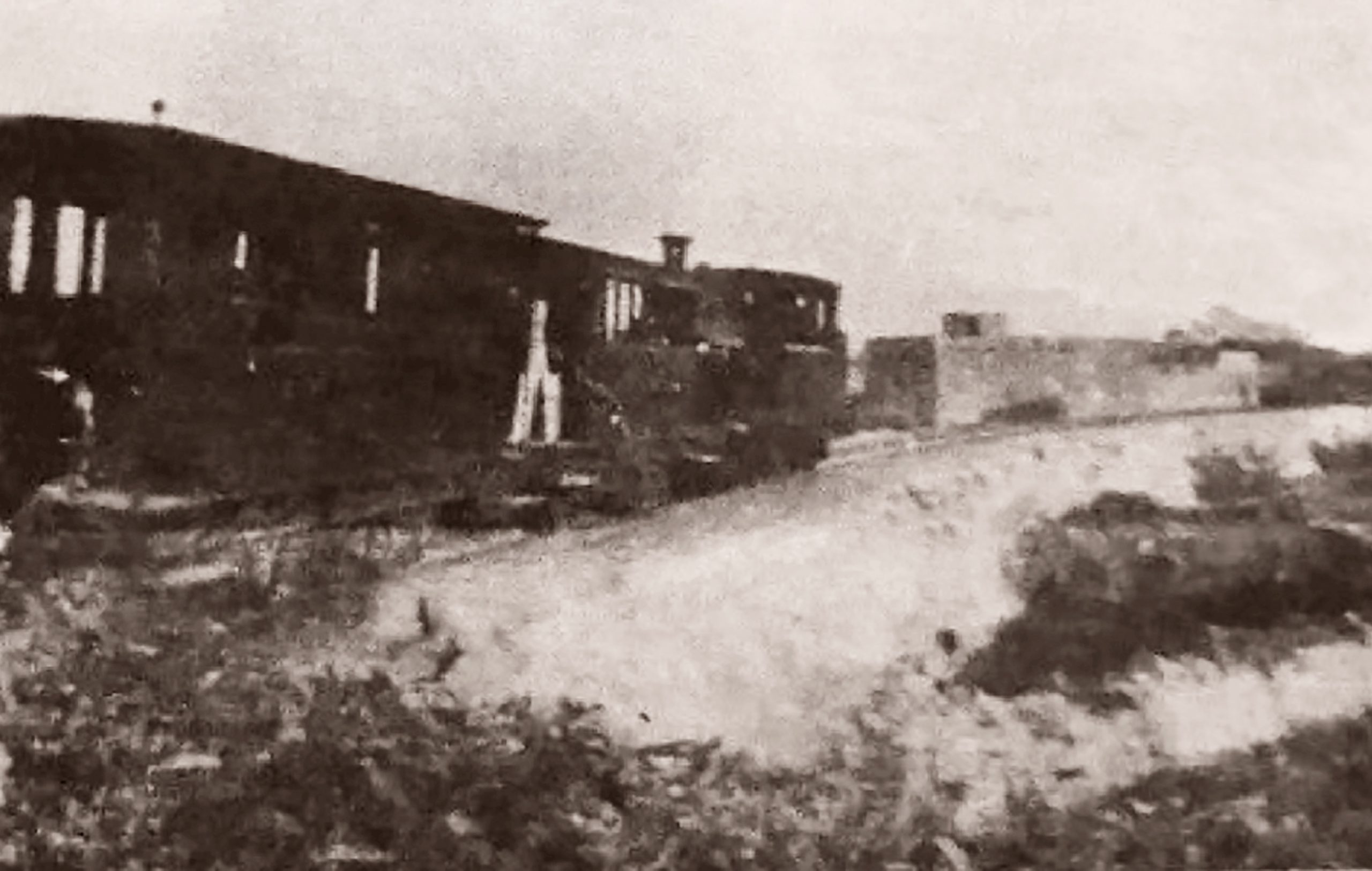 A poor quality photo taken from the far eastern end of Msida station capturing the departure of a train heading along the high curved embankment to Hamrun.