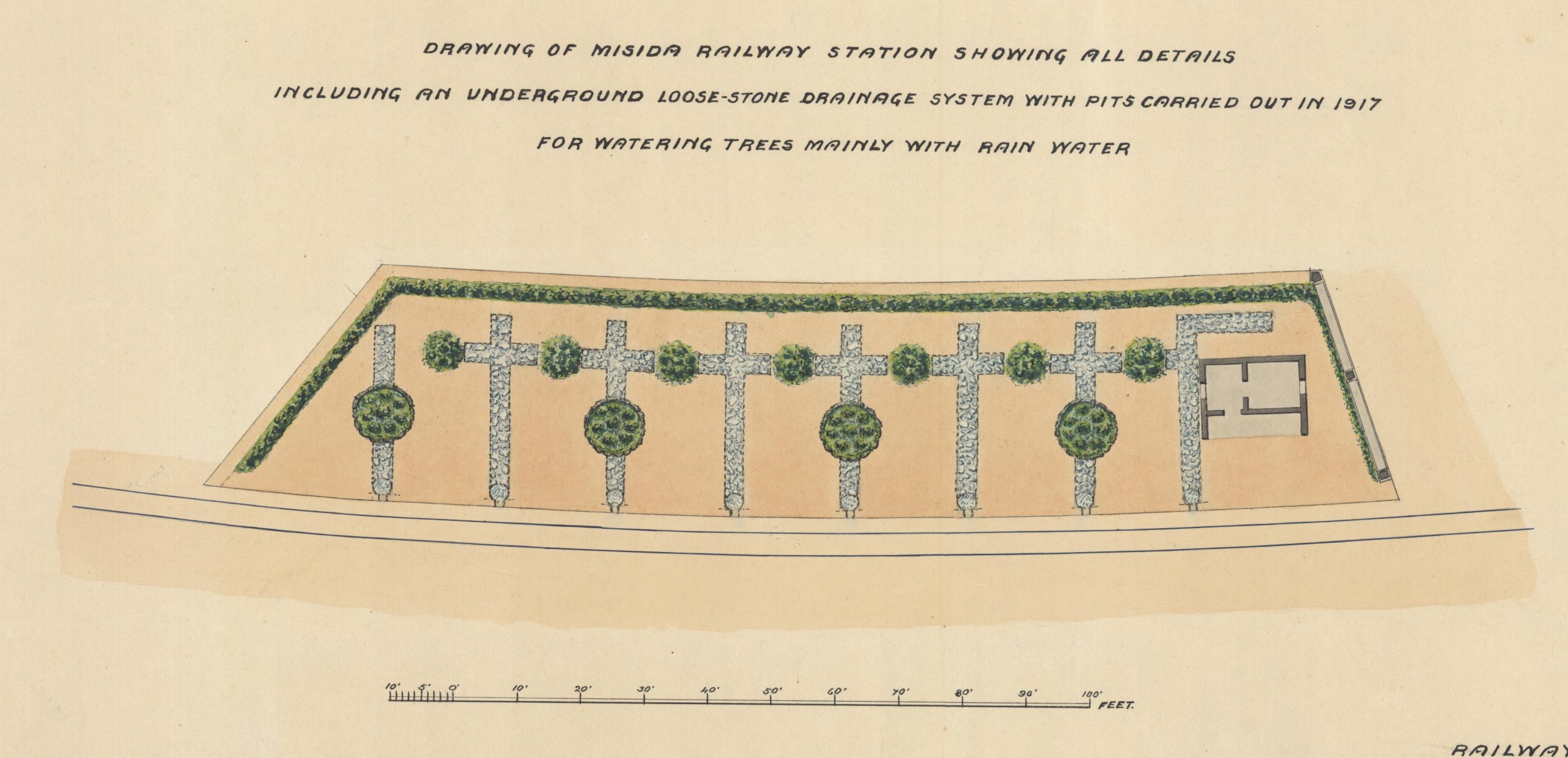 Despite the poor usage of the station hardly warranting any special treatment, it was subject to Nicola Buhagiar’s campaign to green the railway’s stations. By 1917 works had been implemented to irrigate hedging to the railway perimeter, its seven tree pits, and four circular flower beds. The usual weeping fig trees were planted for shade.