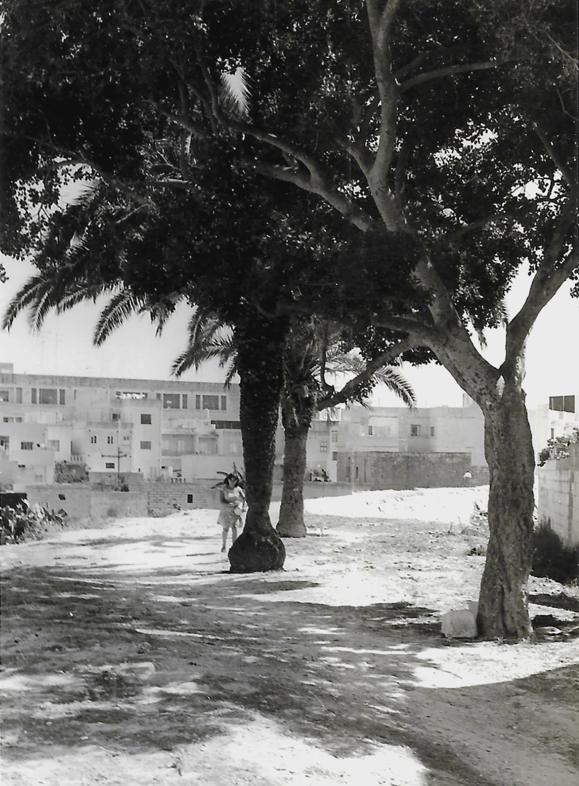 The site of Msida station in 1967, looking along the former platform and curving embankment in the direction of Hamrun. The carob tree on the right and palms were landscaping introduced in 1917 for their practical and aesthetic benefit to passengers.