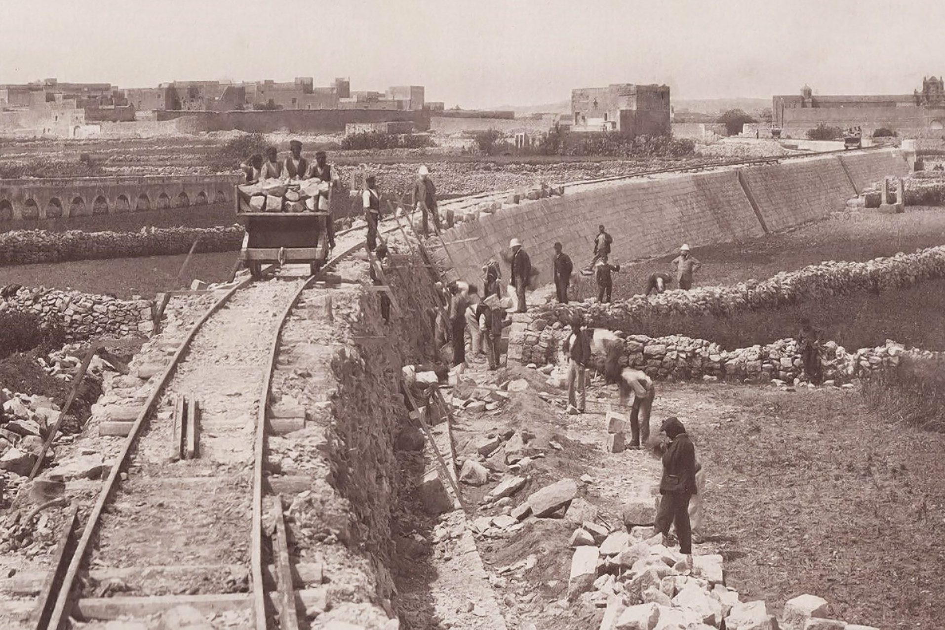 Planning a railway between Valletta and the old capital, Mdina, posed issues for any engineer. The old capital was 550 feet higher than the lowest point of the line, with challenging escarpments to avoid or, if necessary, ascend. The erratic terrain necessitated long embankments, cuttings, bridges, and large sections needing tunnelling through the island’s rock.