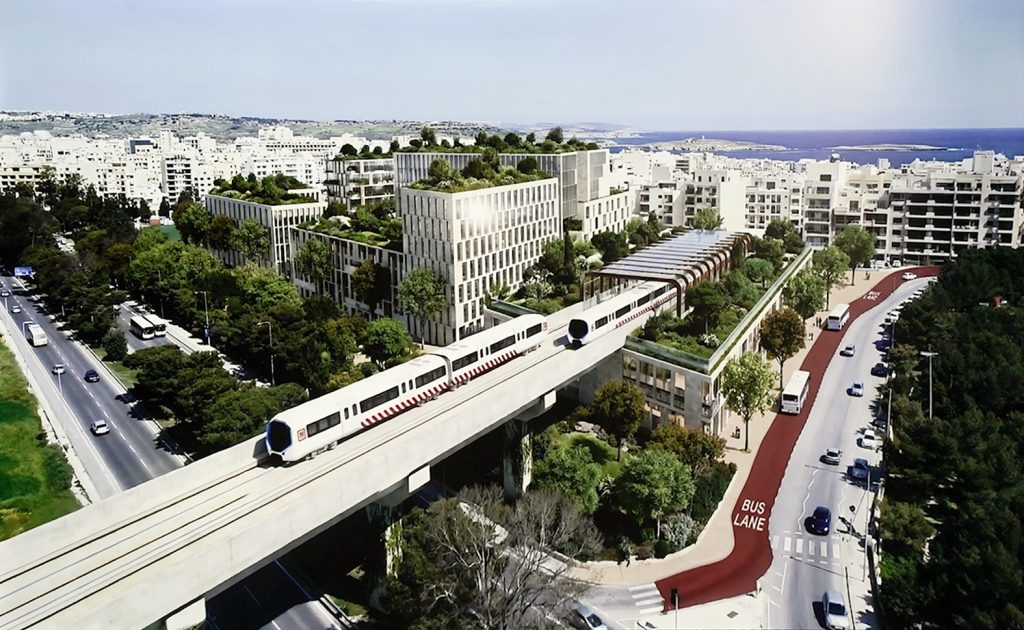 The CGI image of a suggested metro station terminating at St Paul’s Bay.