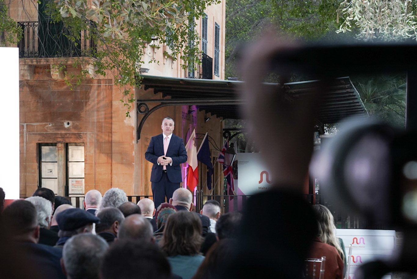 Transport Minister Chris Bonett announcing the Malta in Motion mass transit project at Birkirkara’s old Malta Railway station.