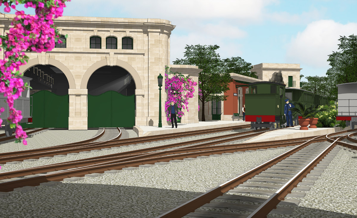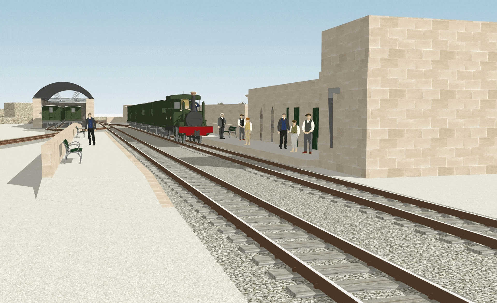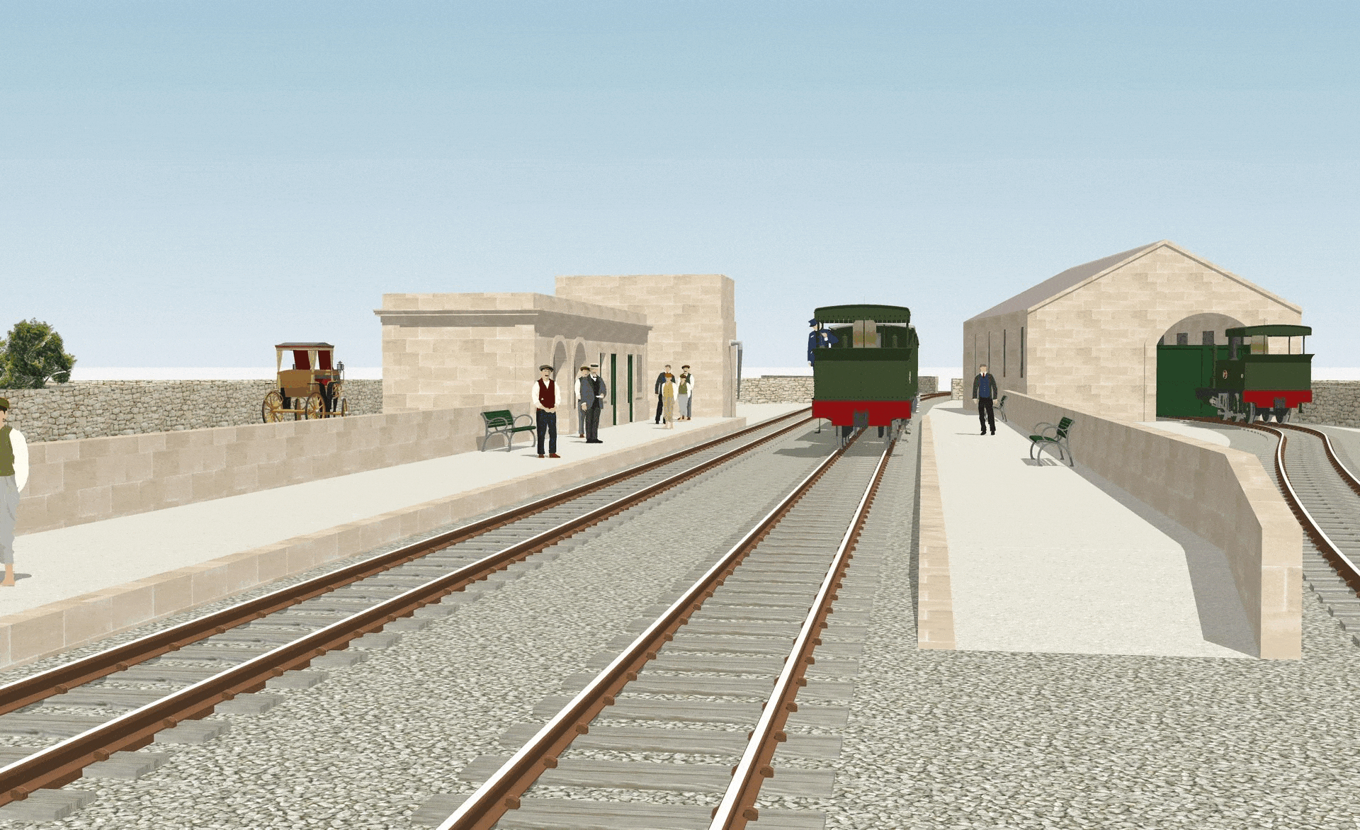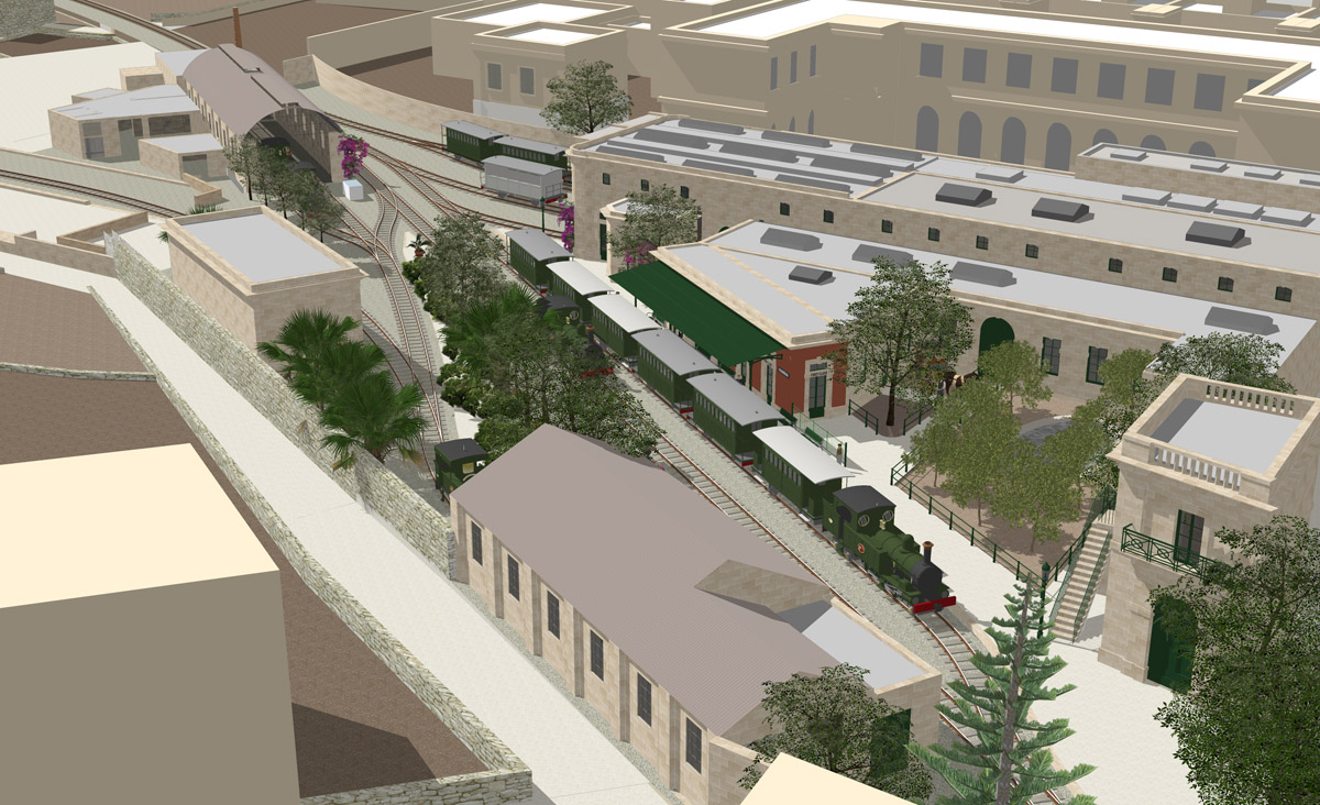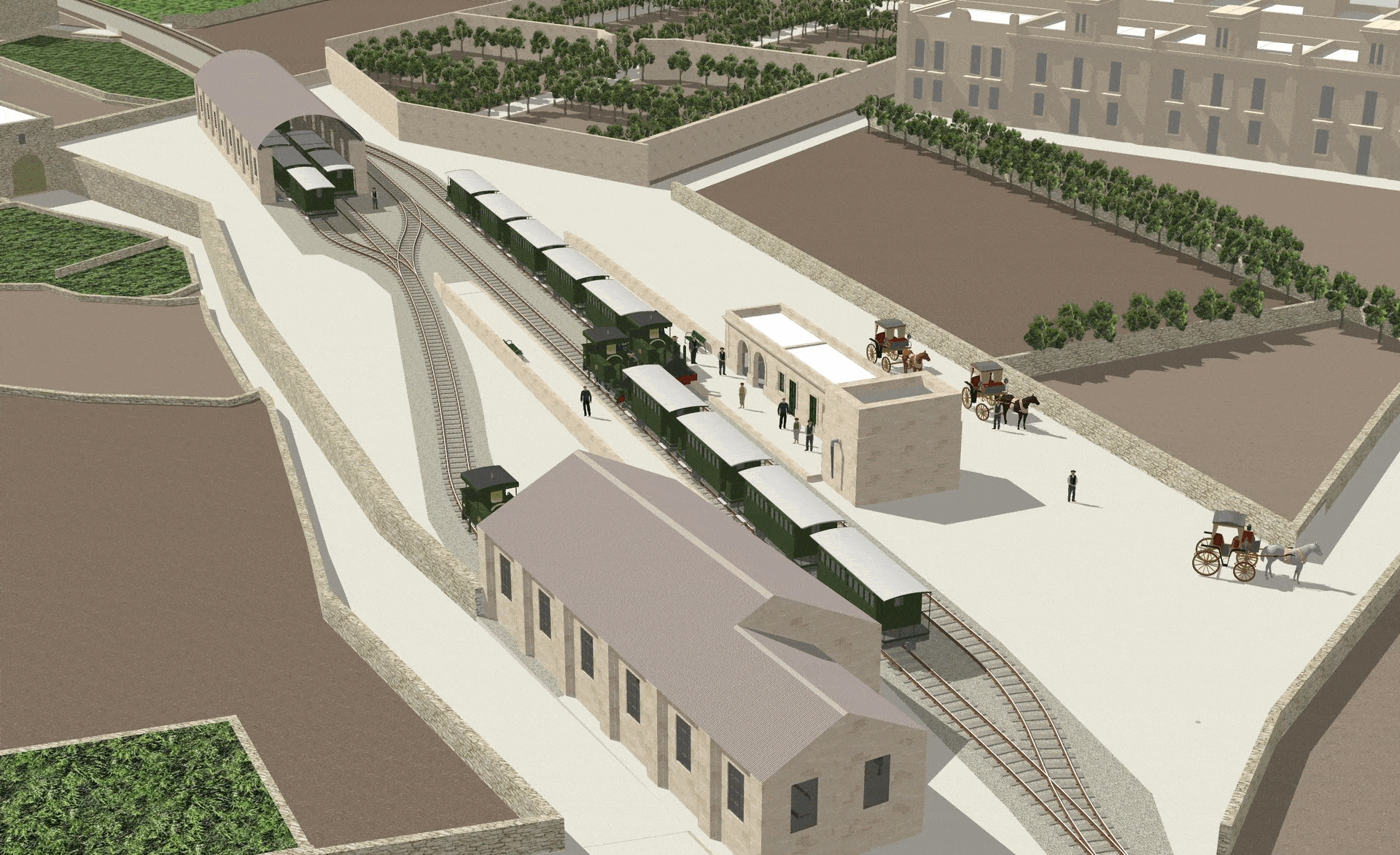 Hamrun was transformed during its lifetime, perhaps more than any other of the Malta Railway’s stations. Despite there being many photographs of the station in later years, there are few visual records beyond the few original drawings that show the station before it was entirely rebuilt at the start of the Twentieth Century. Two periods have been recreated here: the original basic station and buildings that replaced the gardens of Ta Blacas, and the site in its final form with its celebrated engineering works and gardens. Together, they show how Hamrun station developed over a thirty-year period,