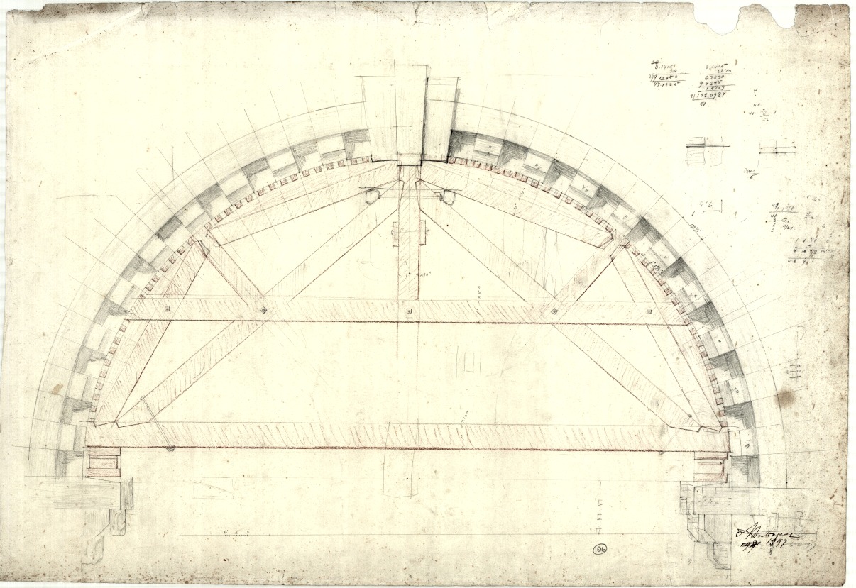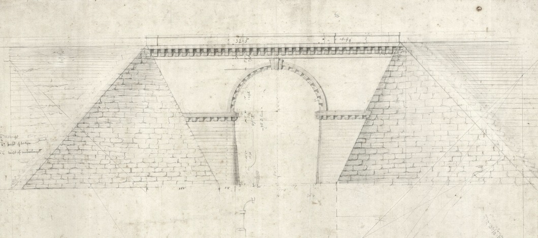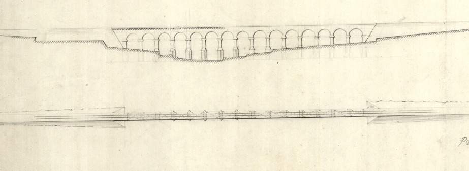 One of the original plans involved a narrow, elegant, fifteen-arch viaduct rather than the present chunky bridge. This was perhaps rejected on cost, but the narrowness of the intended structure made no accommodation for an adjacent roadway for troops at the barracks. Another drawing in the collections of the National Archives of Malta shows the timber centring used to construct the arch. The design of the bridge, with deep projecting cornices below the springing of the arch, allowed for the centring to be supported off them.